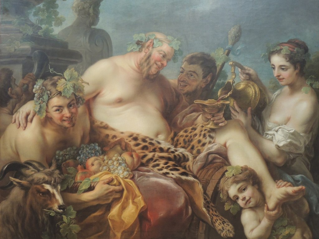 L’ivresse de Silène, Charles André Van Loo, 1747. Silène, un de ces autres « bon gros » qui mangeaient et buvaient à outrance, mais qui pourtant étaient capables de belle philosophie…