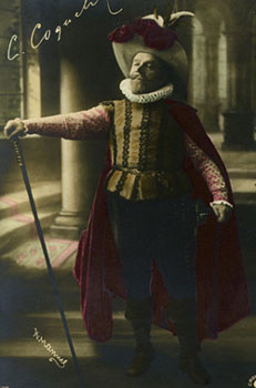 Coquelin, déjà star des Boulevards, s’est fortement impliqué dans la création de Cyrano, allant jusqu’à louer lui-même le théâtre de la Porte Saint-Martin. Acte après acte, il suivit de très près le travail d’écriture de son ami Edmond, ainsi qu’en témoigne une des nombreuses lettres qu’Edmond Rostand lui envoyait pour lui faire parvenir scène après scène le texte du futur triomphe.